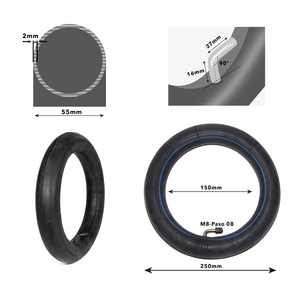 Cámara de aire 10×2.125 Válvula 90º 0º SUNIIK