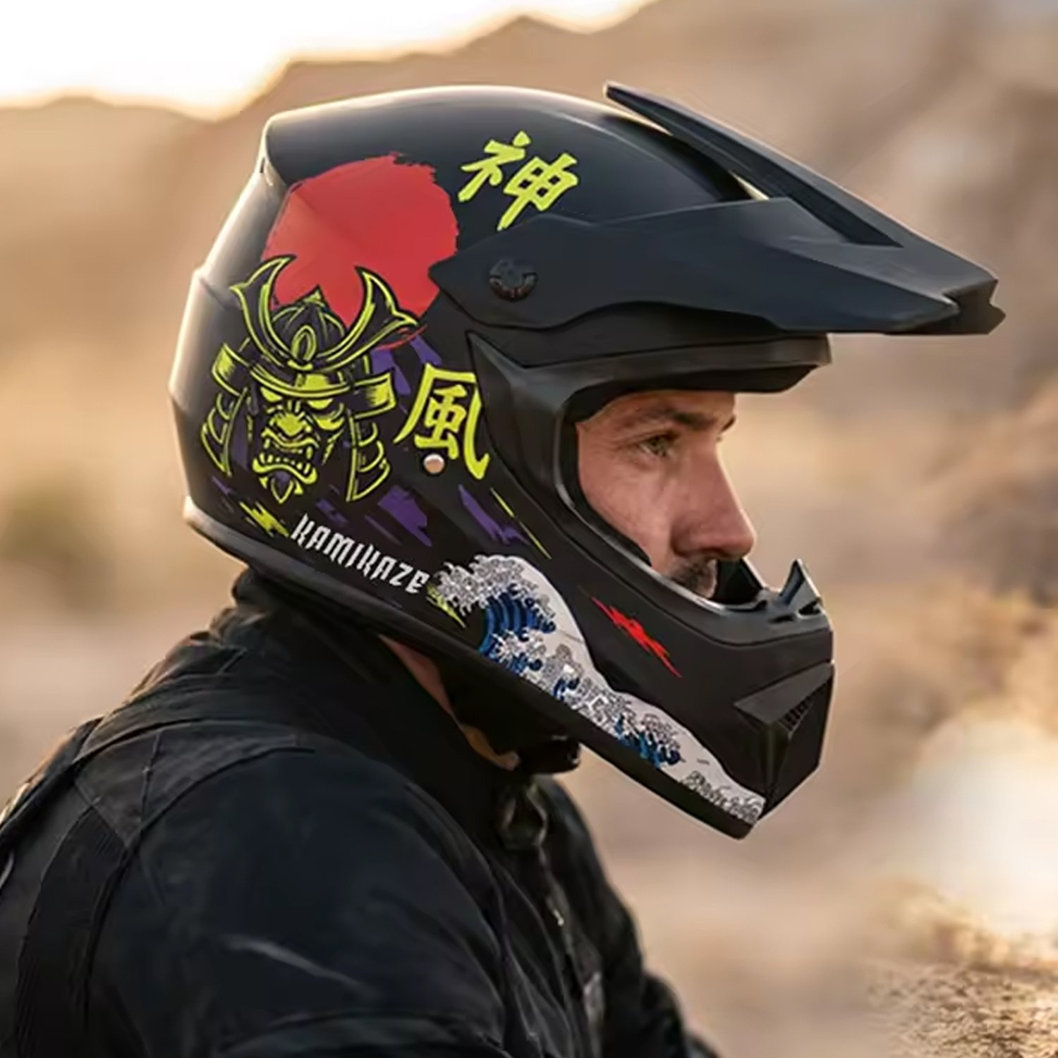 Este casco cross Samurai es perfecto para riders que quieren protección real sin perder estilo. Tiene un diseño inspirado en Japón que lo hace destacar desde lejos.