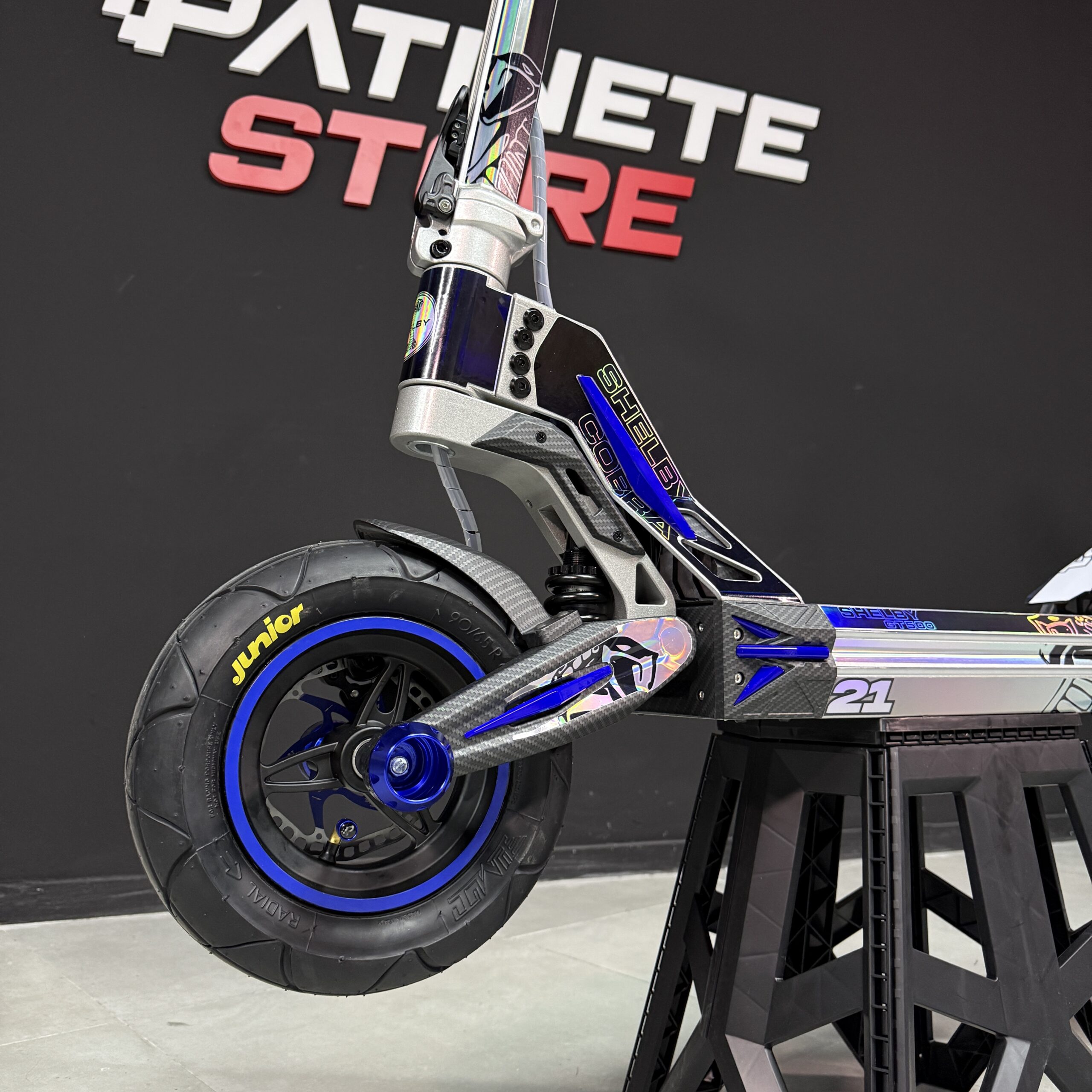 Patinete eléctrico Ecoxtrem M41 Tank DGT 2025 Azul personalizado por Patinete Store a tope de modificaciones! con una estética deportiva y exclusiva, combinando acabados premium y componentes seleccionados para una imagen más agresiva y cuidada.