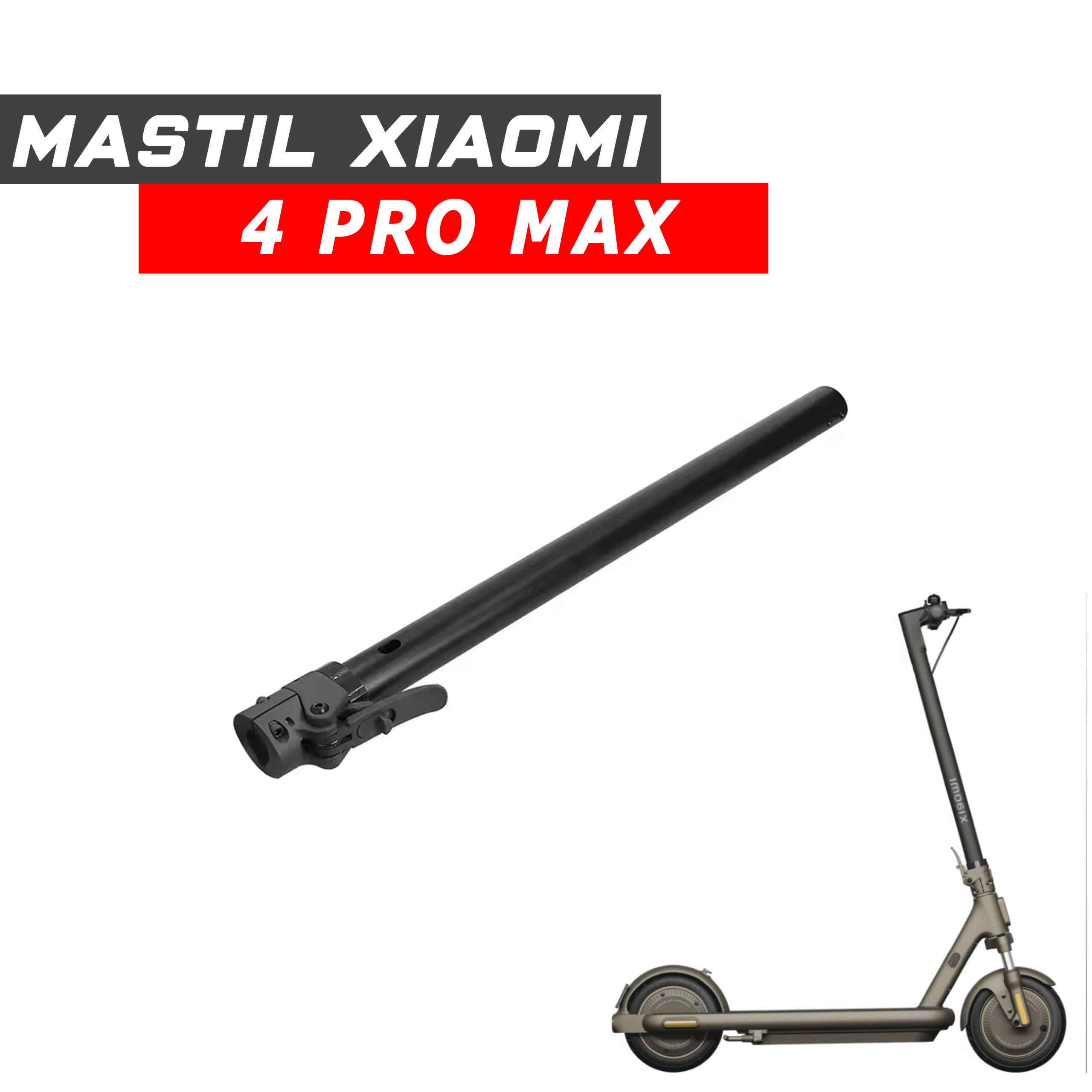 Mástil de repuesto para Xiaomi 4 pro max, fabricado con materiales resistentes y totalmente compatible con el sistema original del patinete. Ideal para sustituir un mástil doblado o dañado y devolver estabilidad y seguridad a tu Xiaomi.