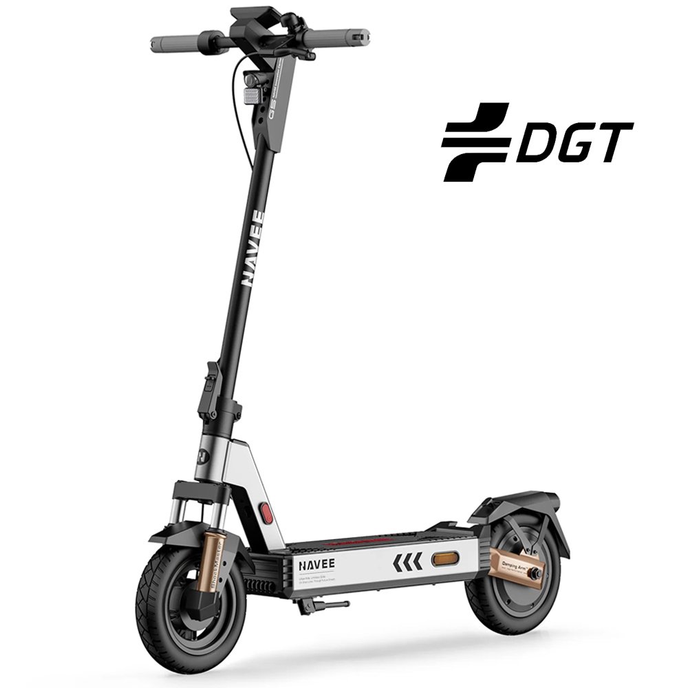 El Navee G5 Max de PatineteStore es un patinete eléctrico urbano con motor trasero de 500W nominales (1000W pico), velocidad limitada a 32 km/h, doble suspensión, freno de tambor, autonomía de hasta 45 km, batería 46,8V 10,2Ah, carga completa en 8 horas, ruedas de 10 pulgadas, intermitentes integrados, Apple Find My, Navee App, y resistencia al agua IPX5. Peso ligero: 23 kg.