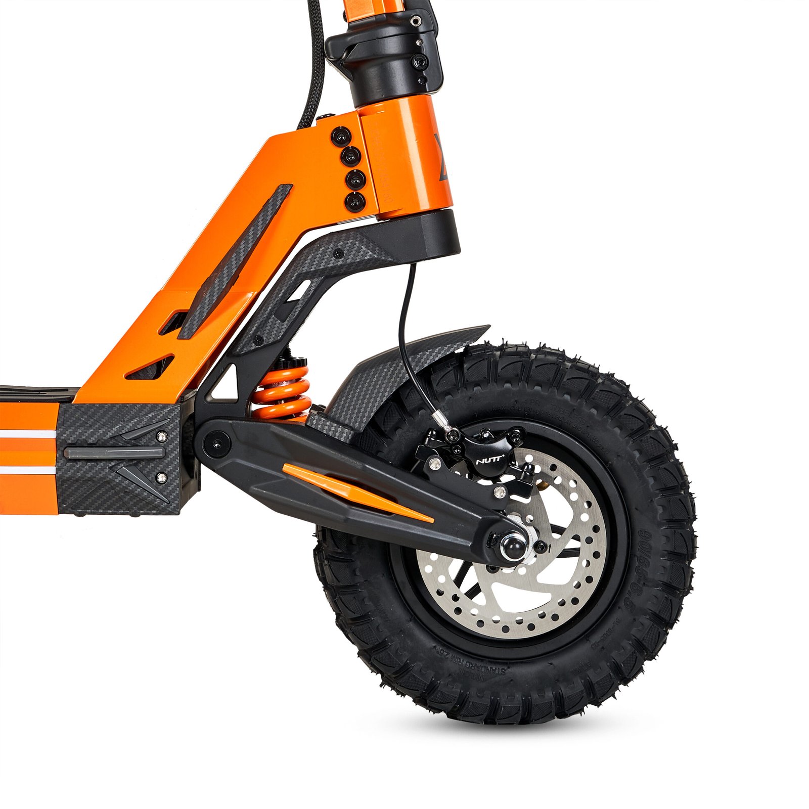 La seguridad es uno de los elementos más importantes en un patinete de alta potencia. Por eso este modelo incorpora frenos hidráulicos Nutt de doble disco, un sistema de frenado mucho más eficaz que los frenos mecánicos tradicionales.